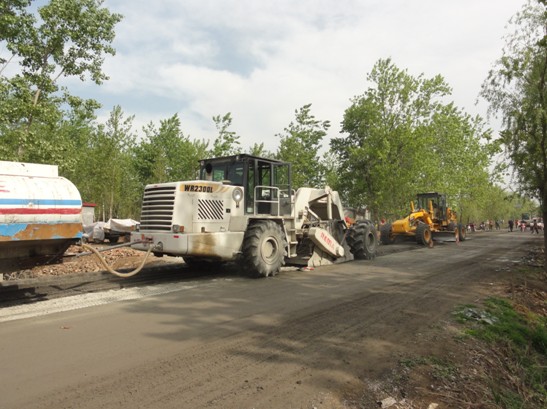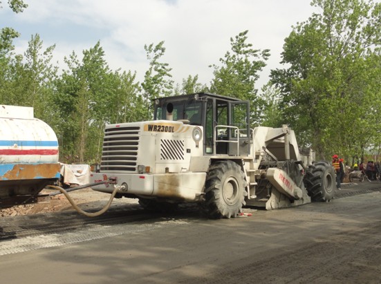 2012年3月,我公司生產(chǎn)的一臺600馬力WR2300L路面冷再生機(jī)在河南省長葛市S325省道進(jìn)行路面冷再生施工,該路段為省道,面層為6-7公分的瀝青混凝土,穩(wěn)定層為水泥碎石穩(wěn)定層。業(yè)主對該路段的大修要求是用銑刨機(jī)將瀝青面層銑刨清運(yùn),然后用冷再生機(jī)對下面的水泥穩(wěn)定土基層進(jìn)行就地冷再生施工。在精心組織施工下,一臺我公司生產(chǎn)的WR2300L路面冷再生施工質(zhì)量穩(wěn)定,深獲業(yè)主好評,綜合評價(jià)勝過另一標(biāo)段的國外同類機(jī)型,在施工后期,業(yè)主只留一臺我公司的WR2300L冷再生機(jī)施工作業(yè),并承諾在以后的工程中繼續(xù)使用我公司生產(chǎn)的WR2300L路面冷生機(jī)。在實(shí)際的路面冷再生施工中獲得國內(nèi)公路施工單位的如此贊譽(yù),使我公司廣大員工深受鼓舞,這是我公司多年勤奮努力的結(jié)果,追趕國外先進(jìn)公司路面冷再生機(jī)的性能,這是我公司多年的目標(biāo),現(xiàn)在這一目標(biāo)已部分實(shí)現(xiàn),國外先進(jìn)機(jī)器的性能并不是國內(nèi)生產(chǎn)企業(yè)做不到的,目前我公司生產(chǎn)的600馬力冷再生機(jī),在機(jī)器的綜合施工效率、噴水計(jì)量精度、銑刨鼓的耐磨性上均已處于國內(nèi)領(lǐng)先水平。我們深信辛勤的努力可以獲得進(jìn)步的回報(bào),我們也將繼續(xù)努力,開發(fā)更先進(jìn)的機(jī)型,努力回報(bào)用戶,回報(bào)社會。