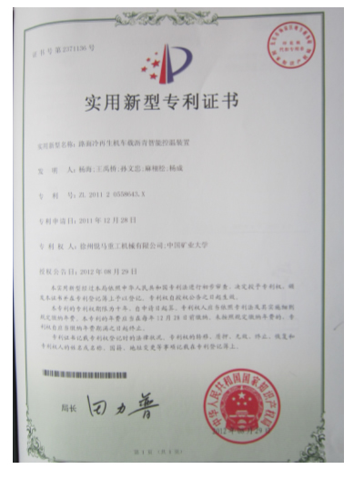 2012年8月29日,徐州銳馬重工機(jī)械有限公司又有一項實(shí)用新型專利獲得中華人民共和國國家知識產(chǎn)權(quán)局的審批通過。該項目由我公司與中國礦業(yè)大學(xué)聯(lián)合研究,專利權(quán)由雙方共有。