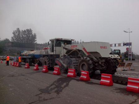 國道G108臨汾段今年開始冷再生大修施工,該路段為公路干線,路基及路面強(qiáng)度很高,其中部分路段,比如靠近收費(fèi)站的路段,經(jīng)過多次維修,采用了改性瀝青鋪設(shè)面層,路面強(qiáng)度很高,即使是進(jìn)口機(jī)械施工也不輕松,導(dǎo)致機(jī)器工作速度慢,刀具磨損損耗量明顯增大等。該路段共有六個(gè)標(biāo)段,施工的主要設(shè)備冷再生機(jī)以進(jìn)口品牌為主。由于工期緊張,先后有兩個(gè)標(biāo)段調(diào)用了我公司生產(chǎn)的600馬力WR2300E,WR2300L冷再生機(jī)。我公司冷再生機(jī)面對(duì)如此高強(qiáng)度路面冷再生,機(jī)器展示了國產(chǎn)機(jī)械的優(yōu)異性能,通過了考驗(yàn),贏得了施工方的認(rèn)可。參于施工的兩臺(tái)600馬力冷再生機(jī),均安裝了我公司自行生產(chǎn)的可拆卸刀庫重型轉(zhuǎn)子,很好地體現(xiàn)了可拆卸刀庫重型轉(zhuǎn)子在高強(qiáng)度冷再生施工中的適應(yīng)性。
